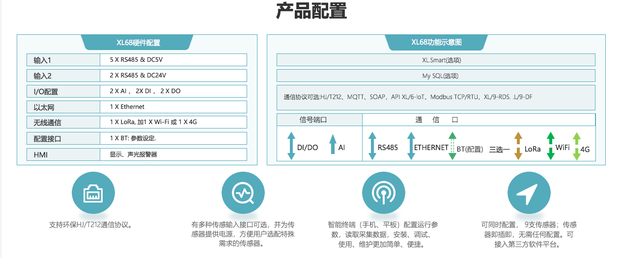 是高集成度的环境监测控制箱,监测环境参数,无线传输。支持环保HJ/T212通信协议。可同时配置, 9支传感器;传感器即插即,无需任何配置。有多种传感输入接口可选,并为传感器提供电源,方便用户选配特殊需求的传感器。