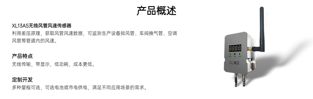XL13AS智能风速传感器,按低功耗、电池供电标准设计,带显示,多种量程可选,体积小,安装接线简单、便捷,适应不同的场景的需求。