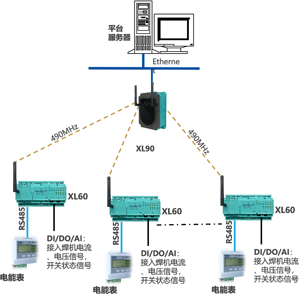 建议每32台焊机配1台XL90网关;每台焊机,配1台XL60