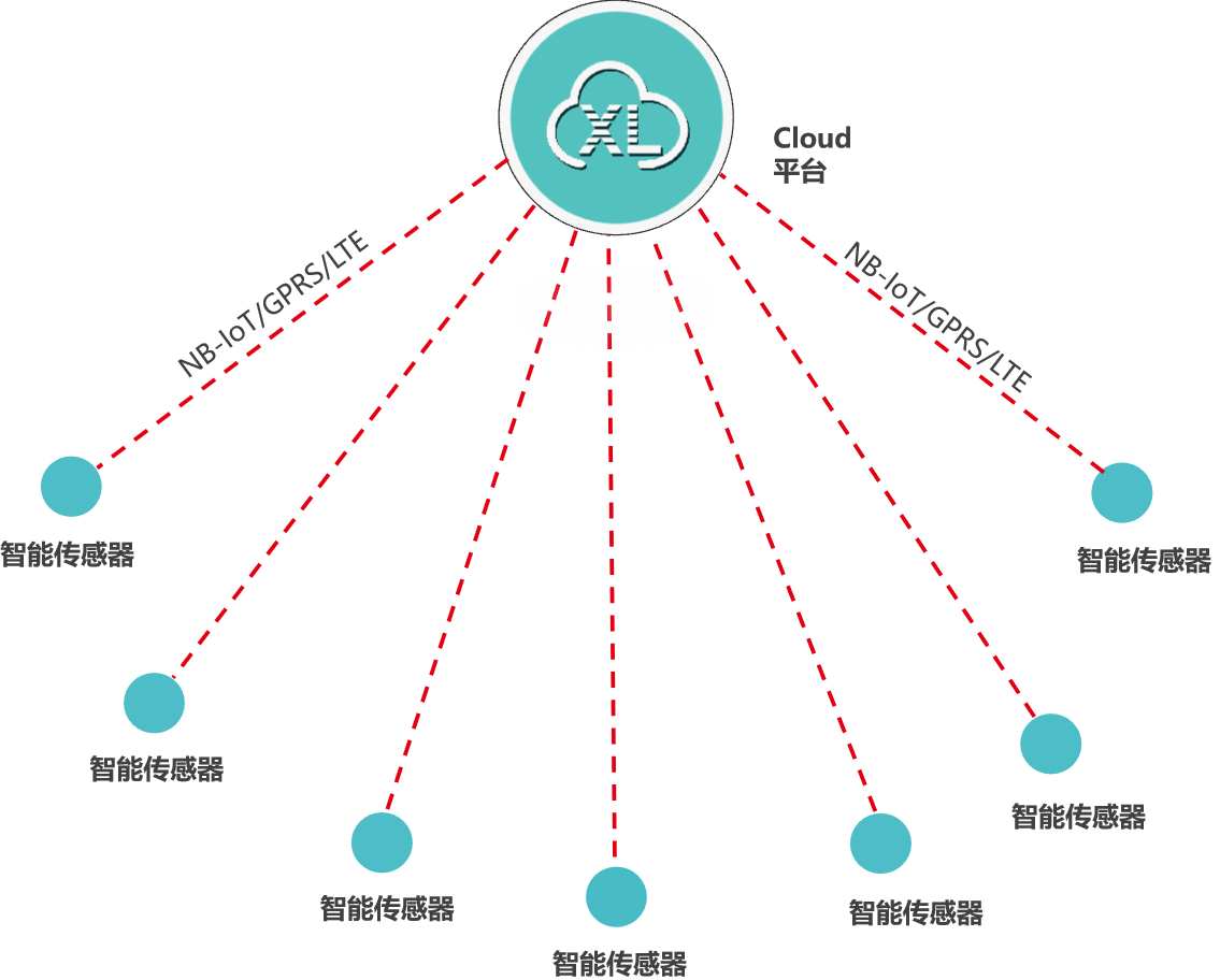 1台XL90物联网关,构建两个独立的LoRa通讯网络,可接入64(理论上不受限制)台智能传感器或智能采集装置