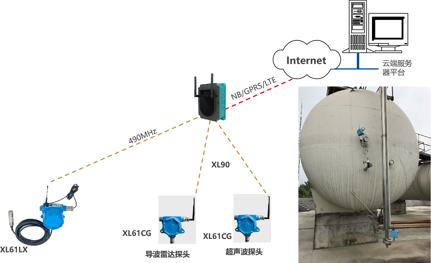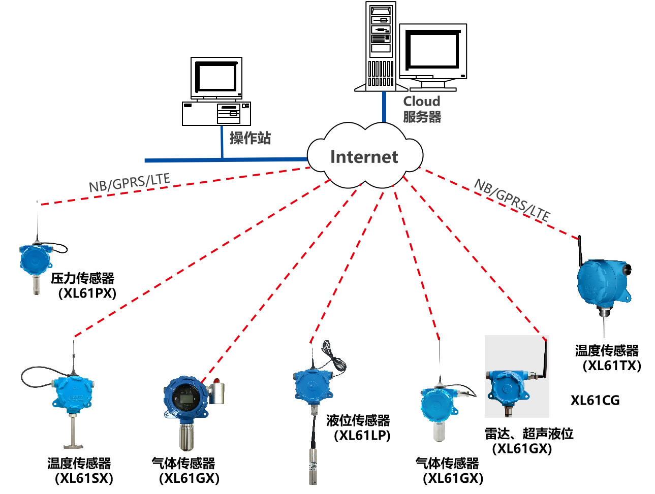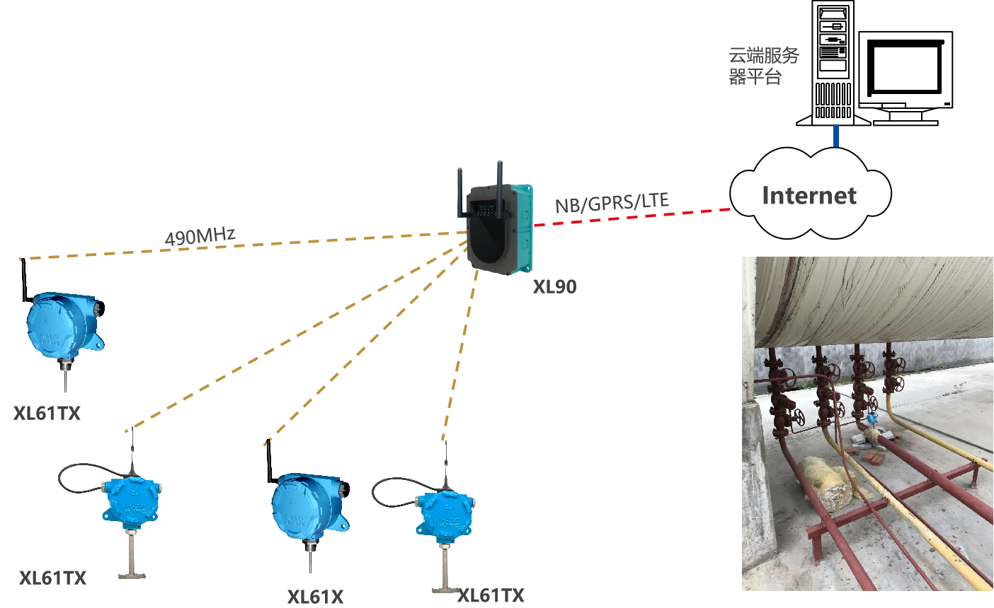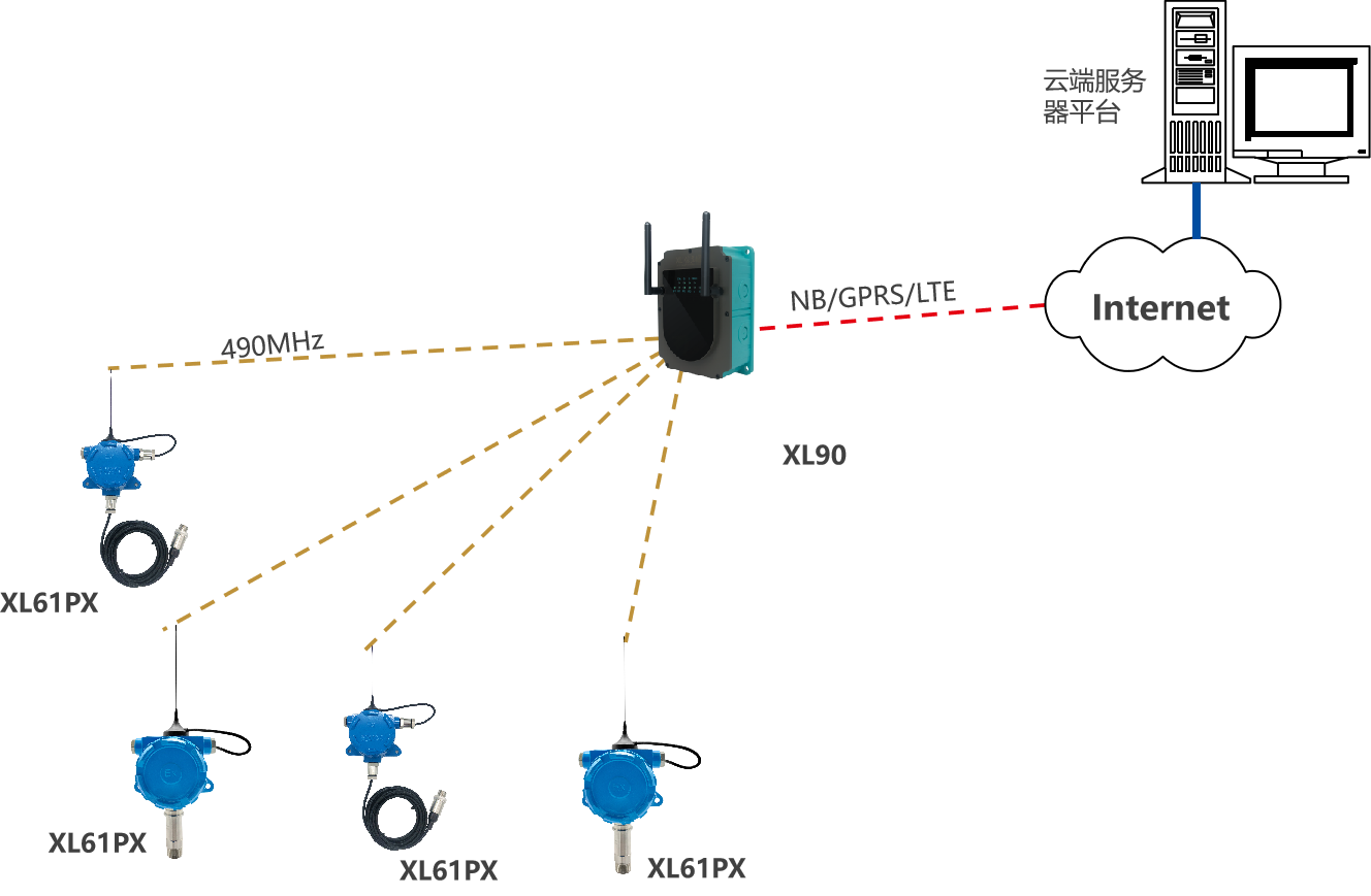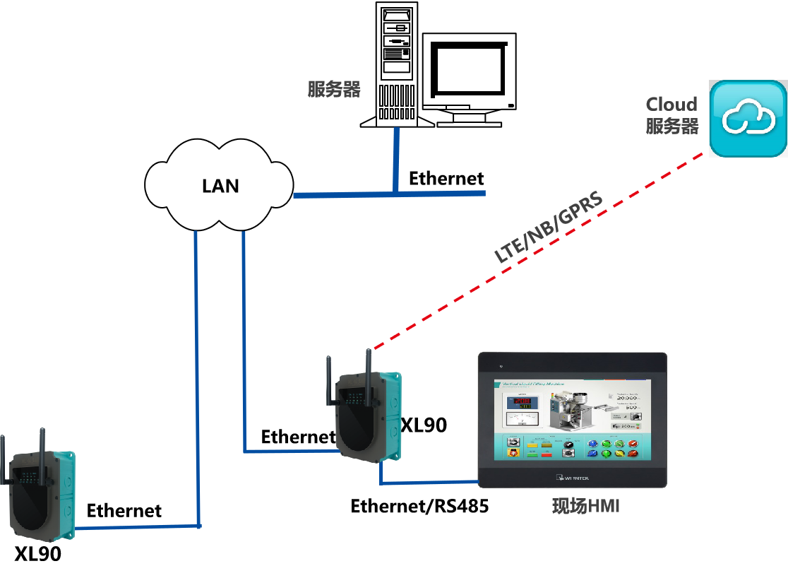 XL90,将数据上传给企业内部的多个系统软件平台;通过LTE(4g)/NB/GPRS将数据上传至云服务器