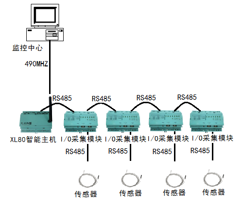 选择我司XL80智能主机,作为系统的通信中枢。智能主机通过RS485方式采集我司的I/O模块XLDX及XLAI的数据信息。智能主机对采集的数据进行协议转换、处理、保存,通过无线的方式,推送数据至中控室监控中心;技术参数说明: