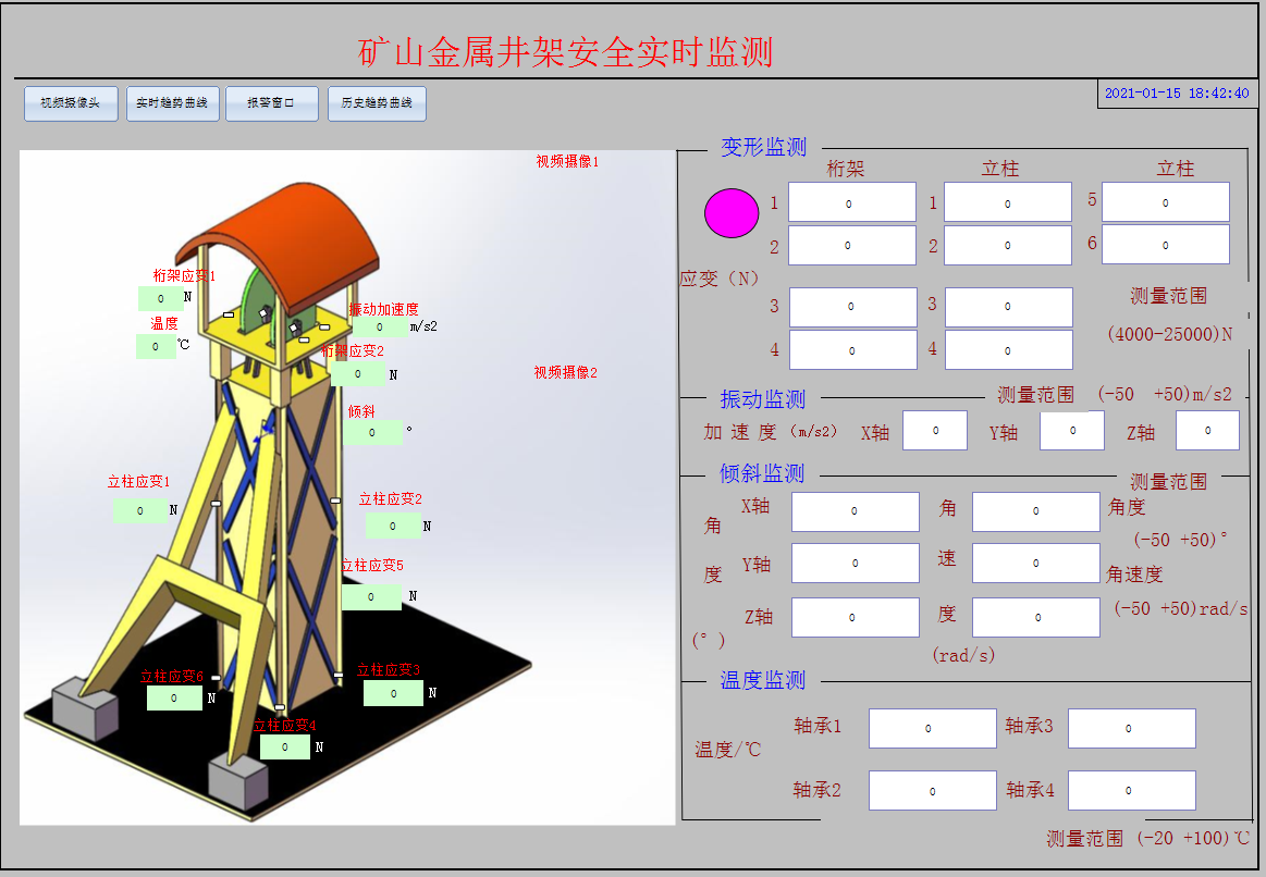 井架安全实时监测系统主界面: