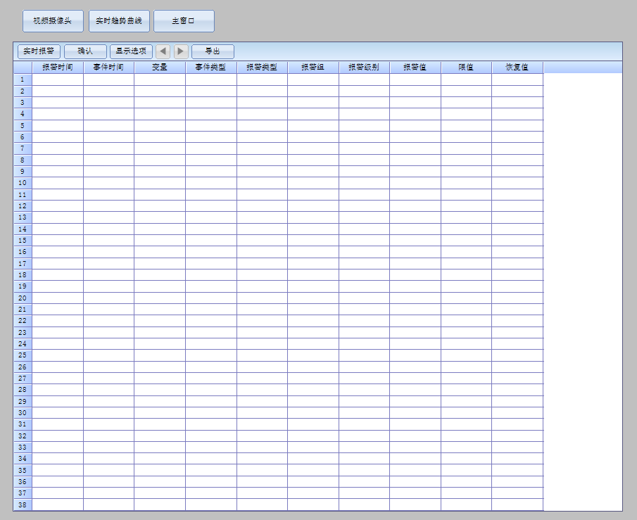 1)实时数据显示:采集XL80智能主机的数据,在上位机上实时显示; 2)历史数据表格:采集XL80智能主机的数据,在上位机上以曲线形式实时显示; 3)报警记录:当传感器数据超过设定的范围时,会以报表形式在报警界面显示。系统结构图及图形界面:
