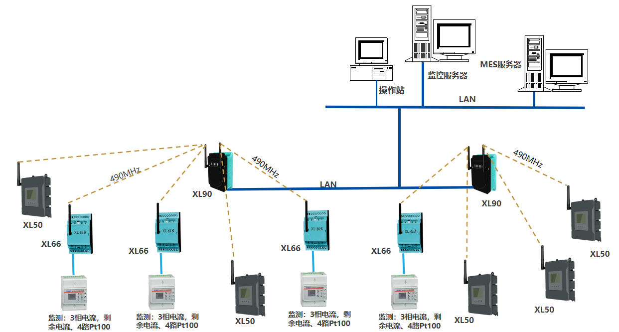 4、所有采集的数据通过无线Lora上传给物联网关XL90,然后网关通过以太网或者WIFI5G)把数据传给MES系统。