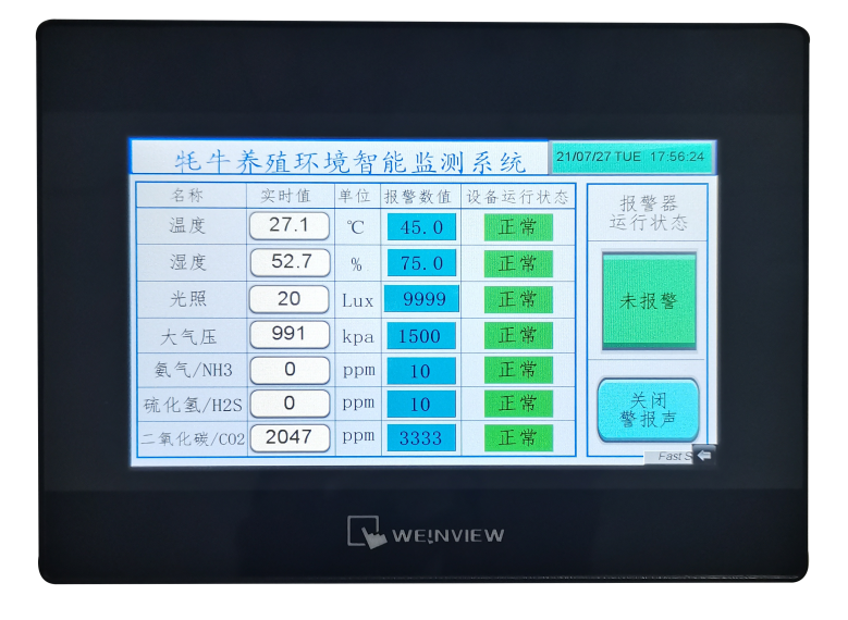 1、可以同时监测氨气、硫化氢、二氧化碳、光照度等多种环境数据;
