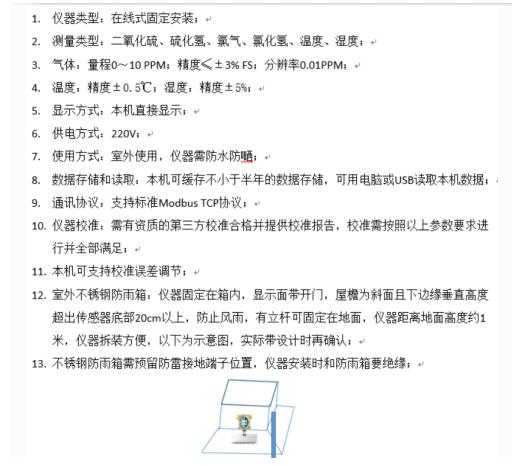 1、按技术要求,气体传感器、二氧化硫、硫化氢、氯气、氯化氢等技术参数都达到如下要求: