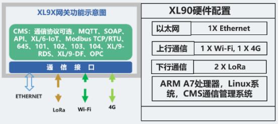 XL90物联网关,支持两路LoRa通信,可以分别配置成对上或对下通信;网关支持Ethernet4gWi-Fi通信,可同时向多个系统转发数据。