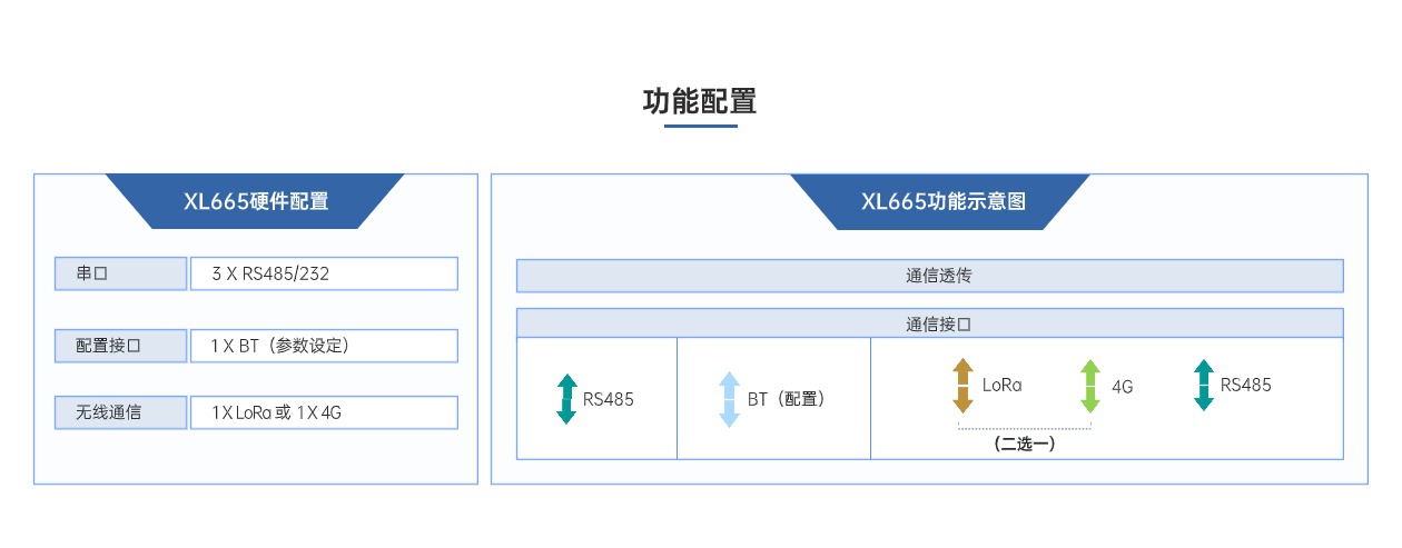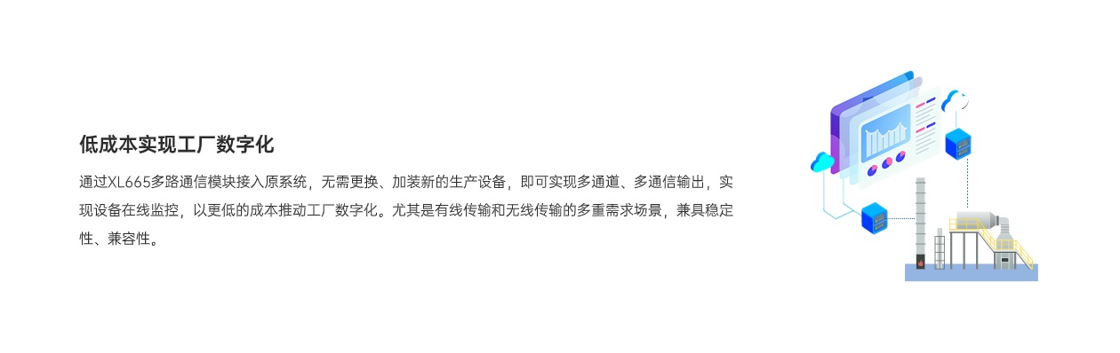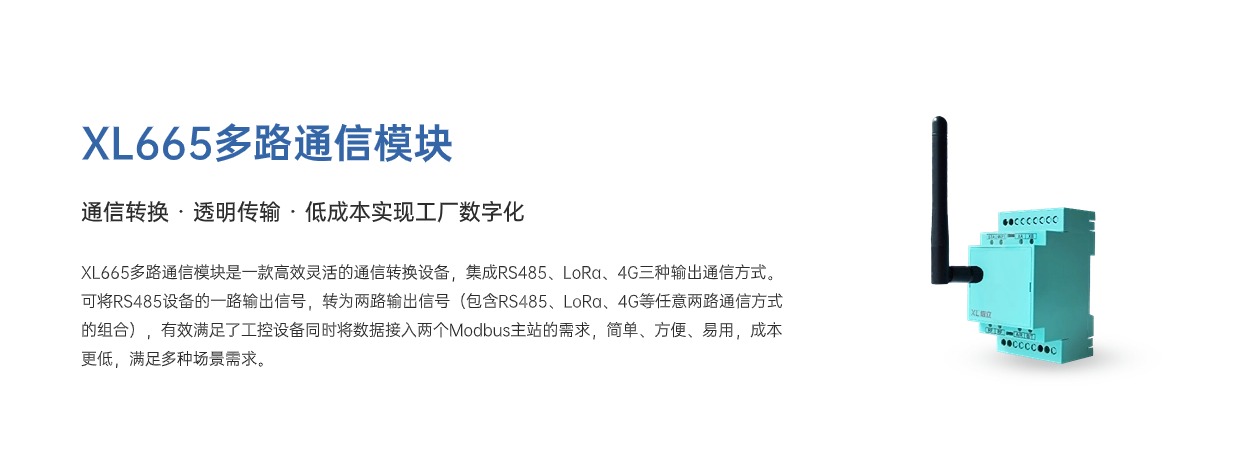 XL665多路通信模块是一款高效灵活的通信转换设备,集成RS4852、LoRa、4G三种输出通信方式。可将RS485设备的一路输出信号,转为两路输出信号,(包含RS485、LoRa、4G等任意两路通信方式的组合),有效满足了工控设备同时将数据接入两个Modbus主站的需求,简单、方便、易用,成本更低,满足多种场景需求。