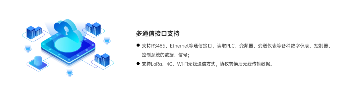 读取PLC等各类控制器、工控仪表的数据,转无线通信或联网,并可同时向多个主站、平台,发送数据;