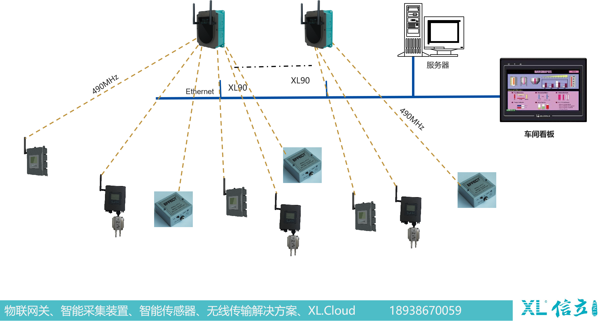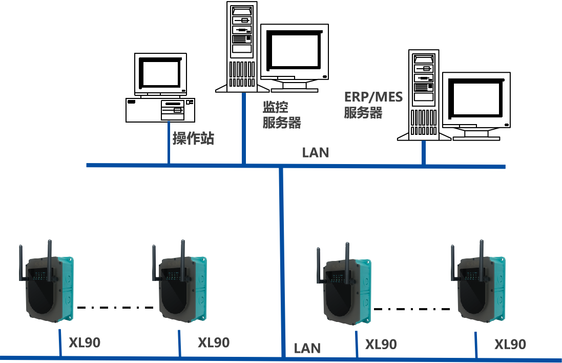 物联网关通过无线方式,获取智能传感器的数据,通过局域网,将数据推送至监控服务器