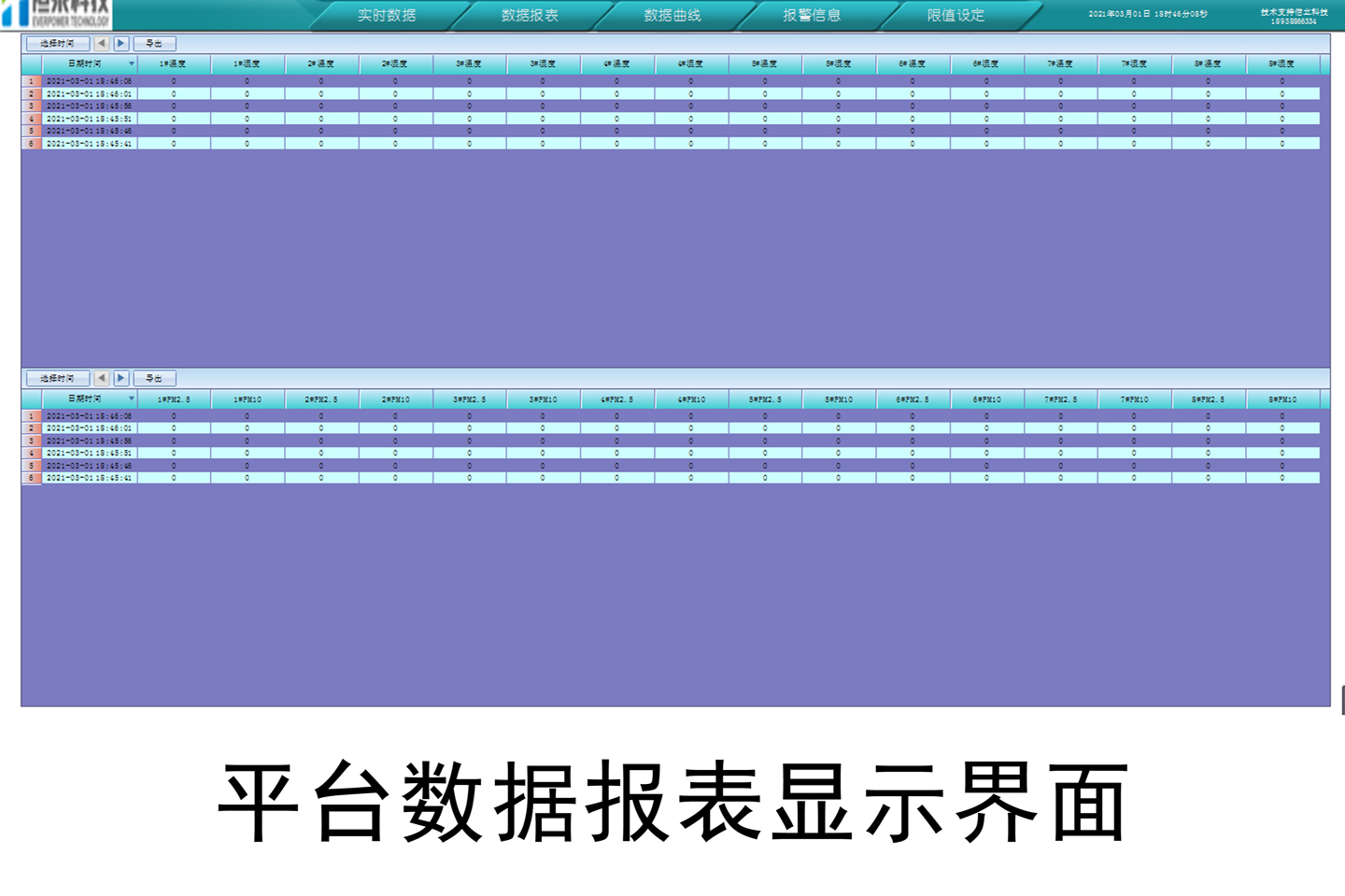 3.在平台软件界面上展示,并形成相关数据的报表、曲线等;