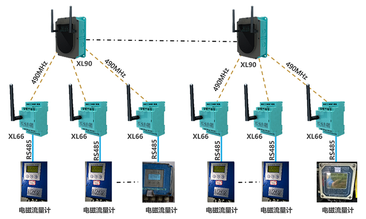 每个监测点配置1台XL66智能转换器,从已安装的电磁流量计读取流量数据上传至XL90物联网关;