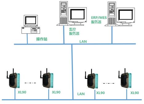根据工厂局域网的分布,设计网关的安装点,以XL90网关为通信中枢,构建覆盖数字化系统区域的工厂物联网。