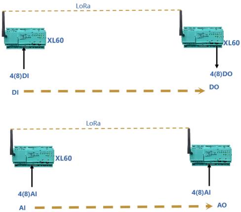 信号透传:两台XL60无线采集装置,可将石油、化工、冶金等现场仪表的电流、电压、开关等信号,无线对传到PLC或控制、显示仪表,减少直接敷设电缆传输信号的麻烦和施工成本。