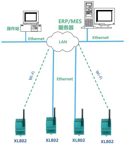 XL80通信主机通过RS485通讯口读取空压机的运行参数。可通过Ethernet / Wi-Fi接入局域网,将数据推送至监控平台;或通过LoRa无线传输至XL90网关,经由XL90网关转发数据至监控平台。