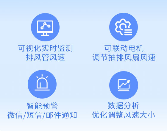 根据现场需求,可联动电机,当风速过小或者过大,自动调节抽排风扇的转速,以保持排气管道内的风速控制在合适范围内。